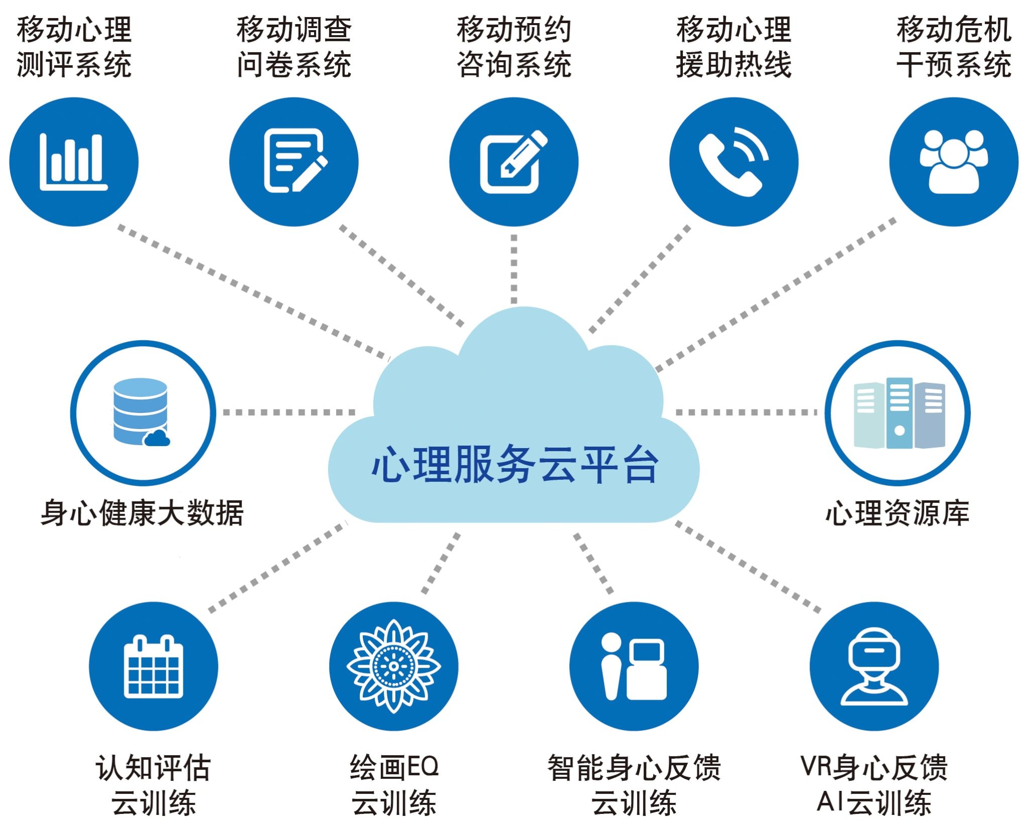 热度空间-心理服务云平台是由心理测评系统(包含心理健康常用评估量表工具15大类)、辅助调查问卷系统,常模自动更新,实现心理行为问题筛查、心理危机即时预警、心理测评档案和全员心理健康水平综合分析报告一键生成,科学高效管理社会全员心理健康。